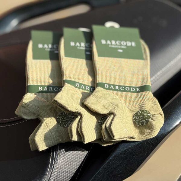 جوراب مچی سهپاشنه مدل جناقی barcod در رنگ سبز سدری، با بافت ۱۰۰٪ پنبه کش سانی راحت و سایز ۴۰ تا ۴۵، انتخابی با دوام و خوشفرم برای استفاده روزمره؛ محصول ایران، کد 9003.